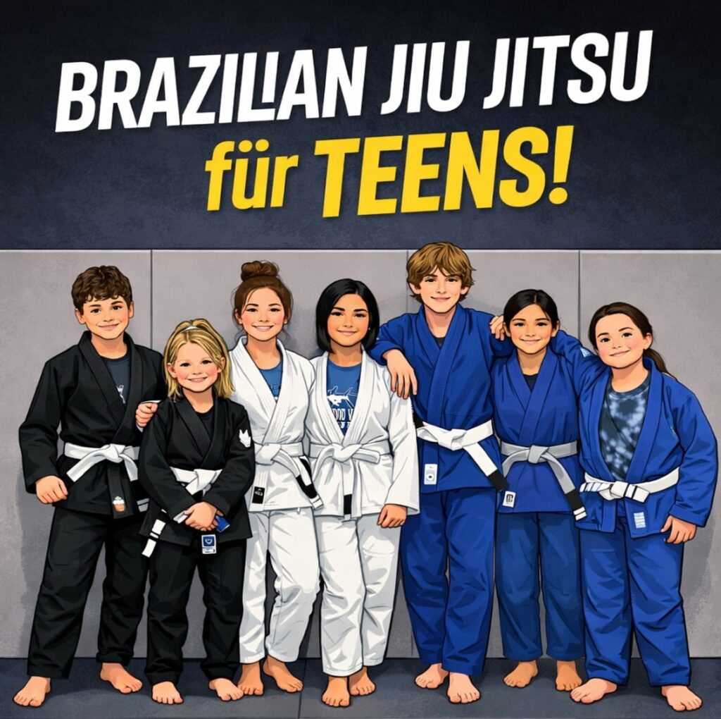 2026 geht unser Teenager BJJ Angebot weiter! 4 Wochen Schnuppertraining für alle Teens zwischen 12-16 Jahren. Kein Risiko für Eltern, kein langer Vertrag.